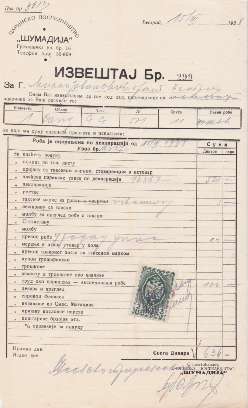 - Račun iz Kraljevine Jugoslavije, 1938. godina
