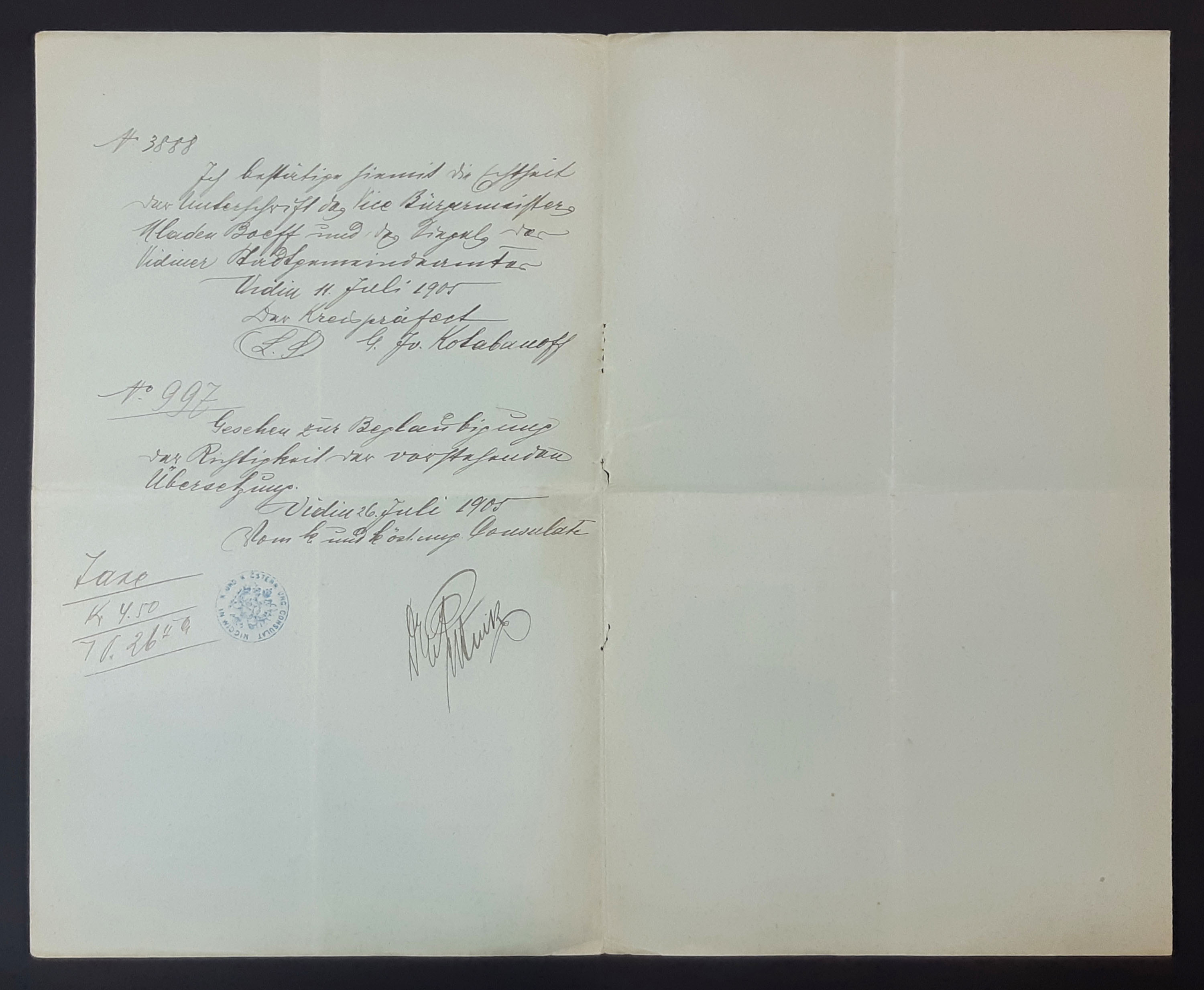 Potom je dokument overen u opštini i okrugu u Vidinu (11. jula 1905.),