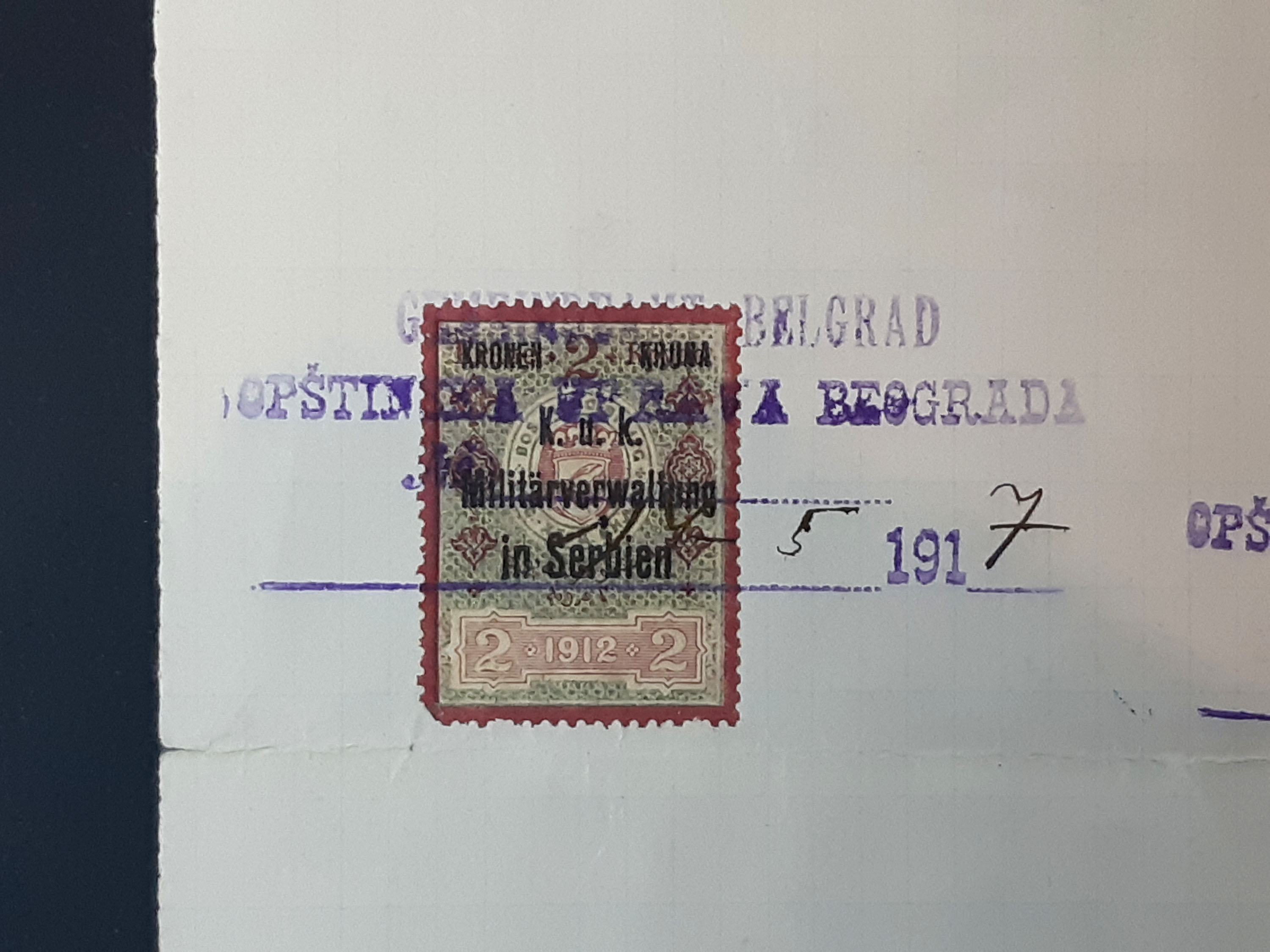Na dokumentu je i očuvana taksena markica Austro-Ugarske sa oznakama vojnih
