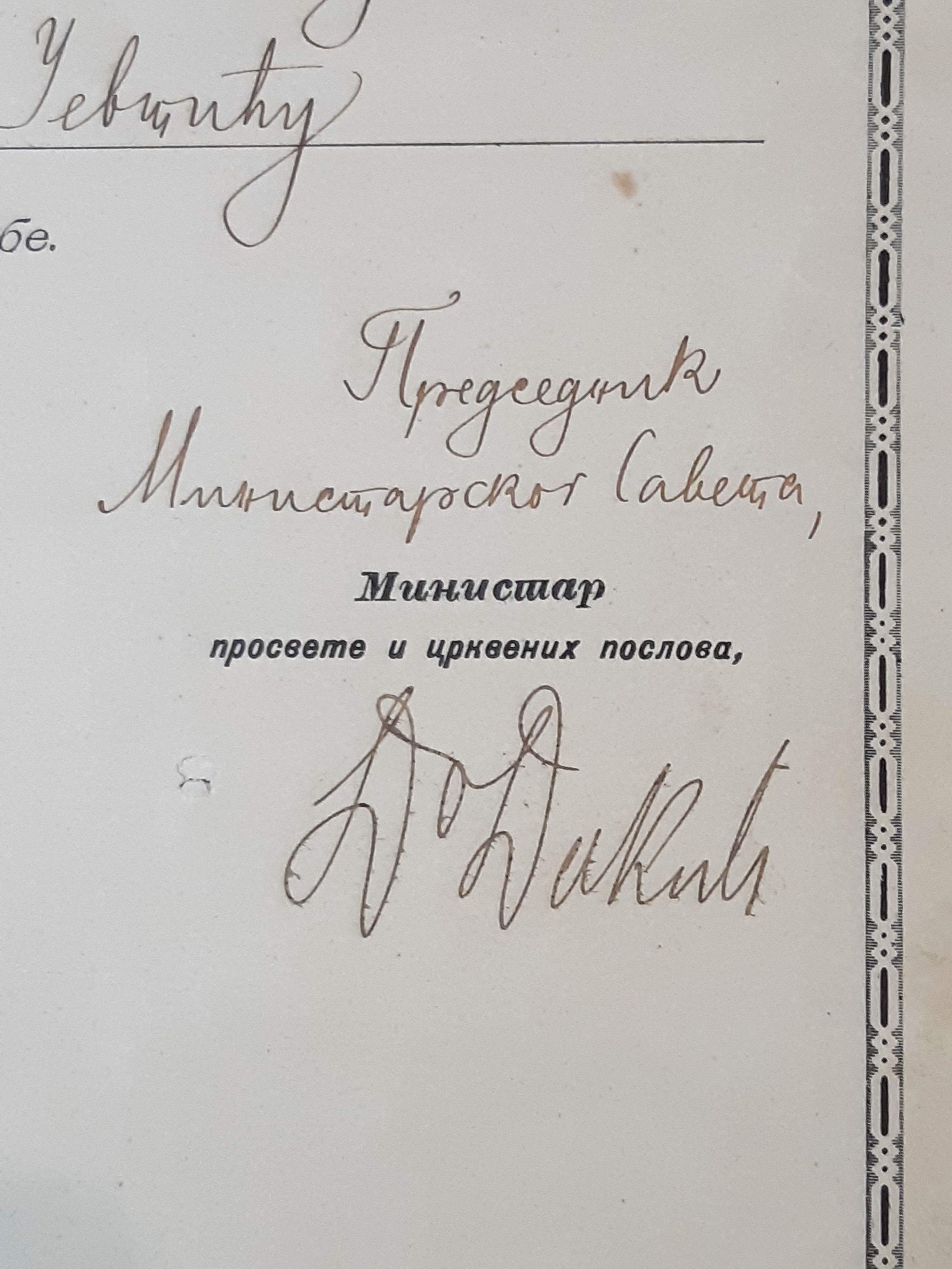 Dokument nosi potpis lično tadašnjeg predsednika ministarskog saveta (vlade)