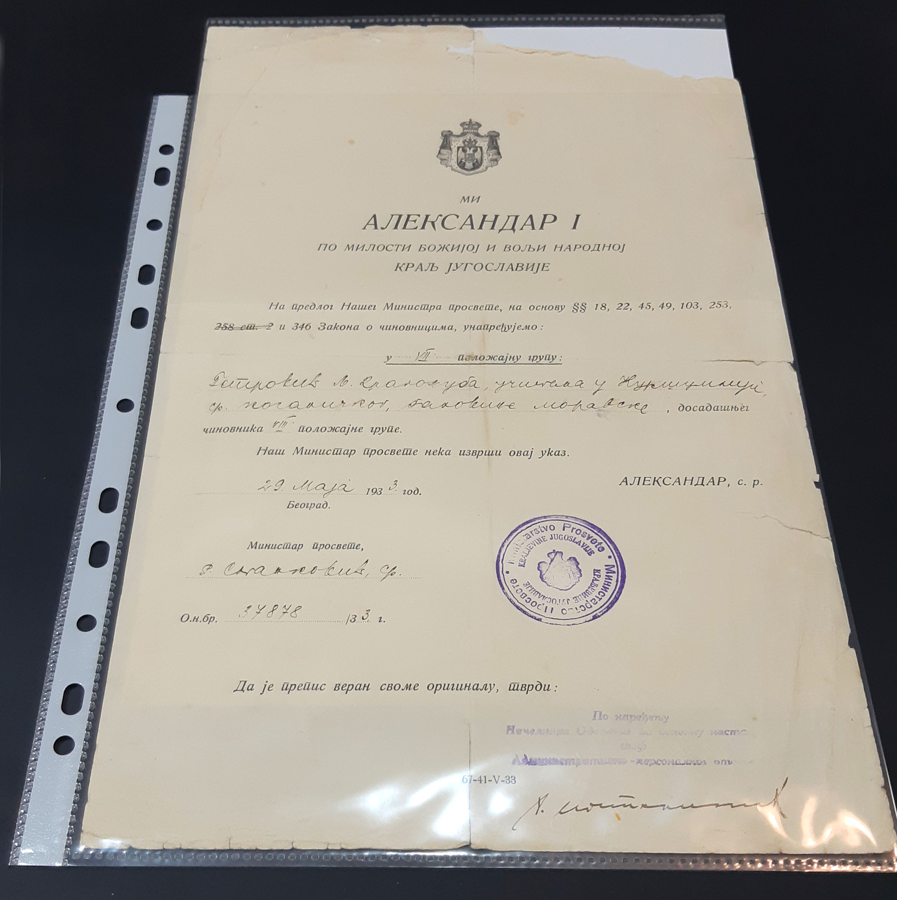 ukaz o unapređenju učitelja u Kuršumliji Petrović Lj. Dragoljuba.