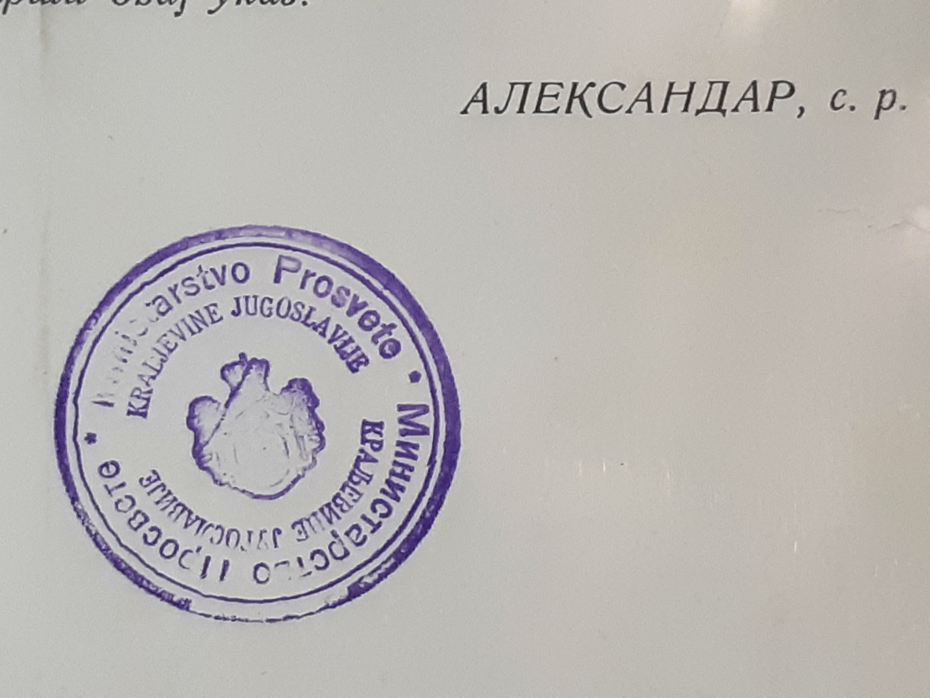 jer ga je potpisao lično ministar prosvete Kraljevine Jugoslavije Radenko