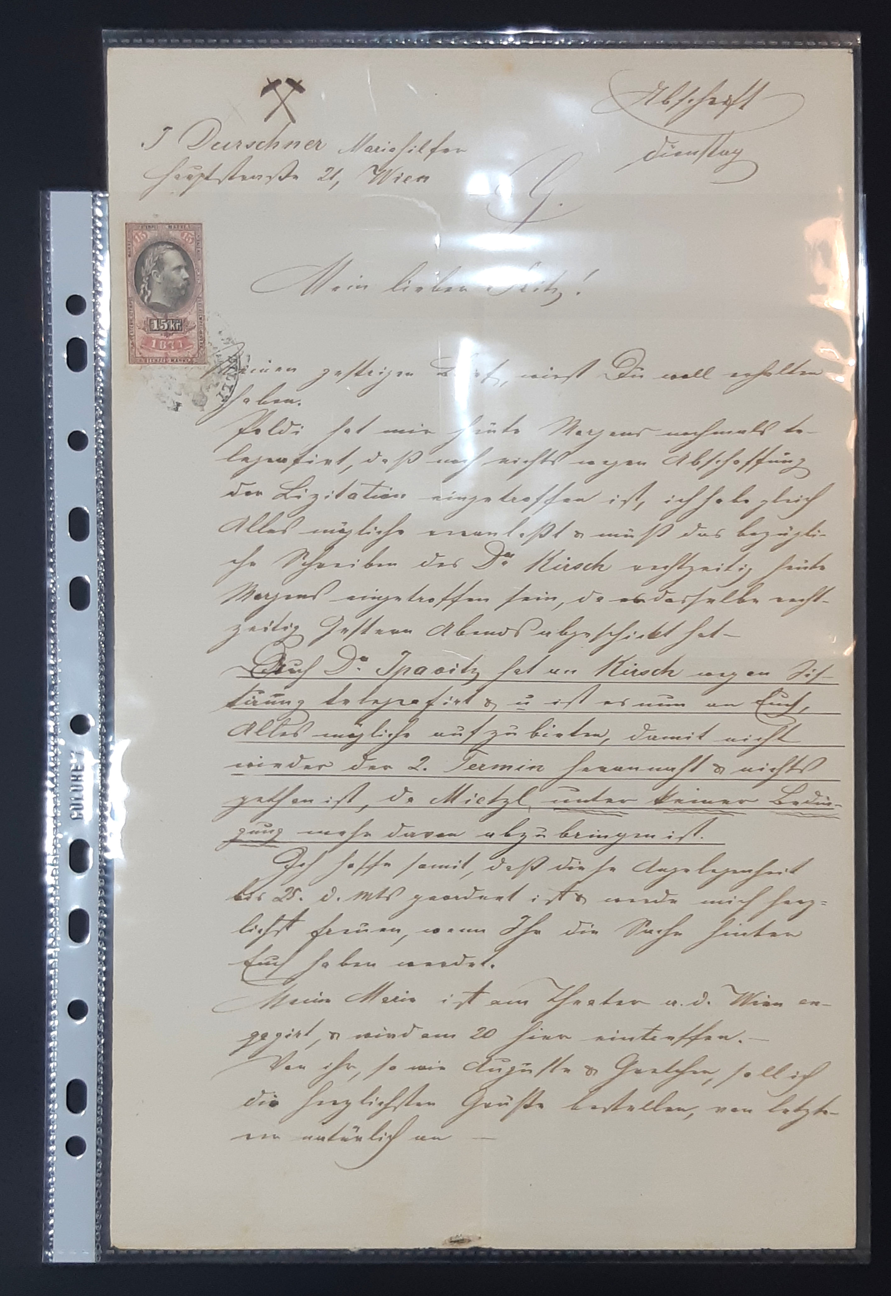 Lično pismo sa fiskalnom markicom 15 kr., Beč