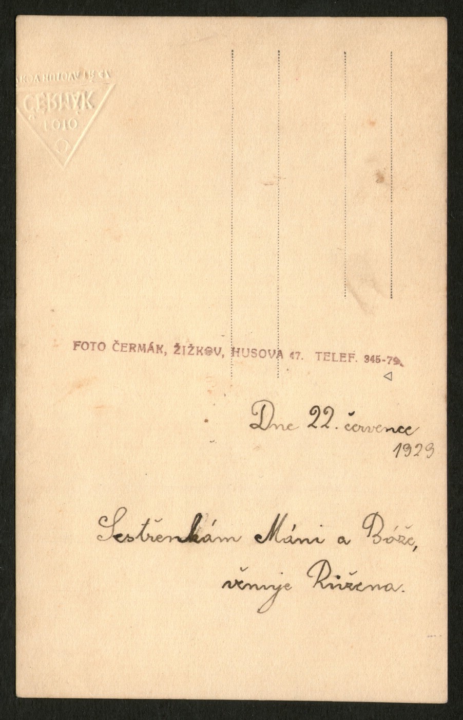 Na fotografiji je takođe i reljefni žig istog fotografa iz naselja Žižkov koji